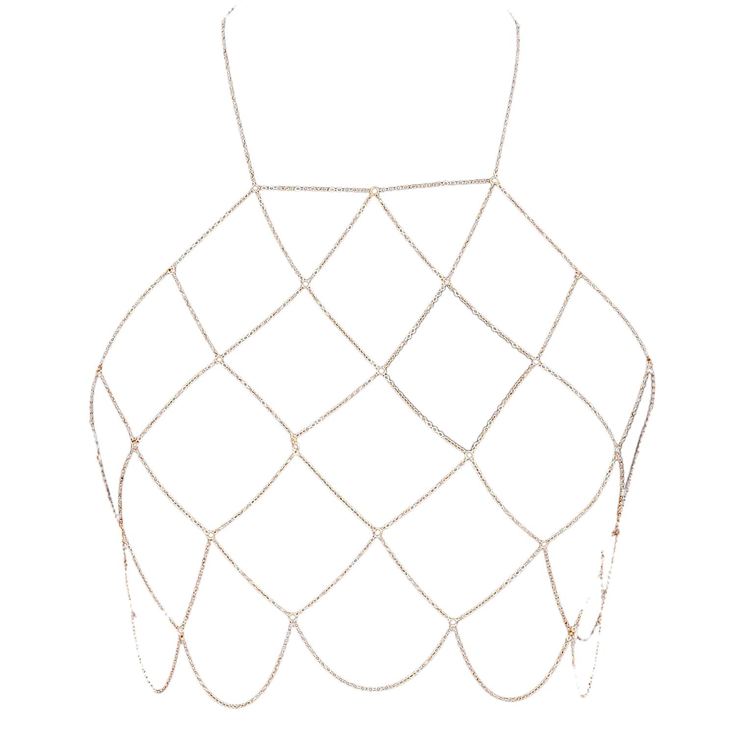 Women's Halterneck Mesh Body Chain Bralette Bikini Bra Necklaces Stomachersgold