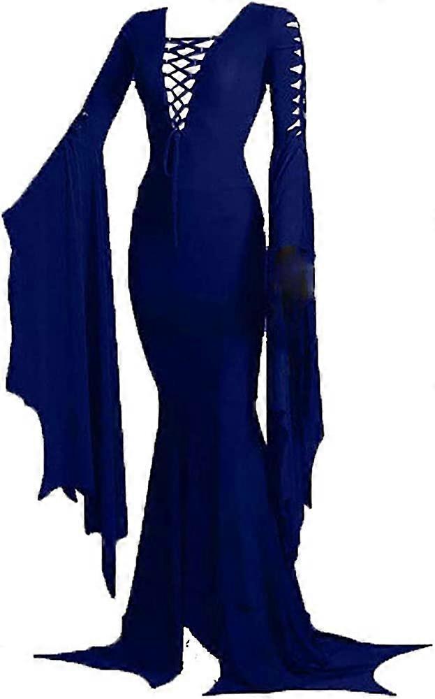 Women's Morticia Addams Floor Dress Costume Witch Sexy Gothic Vintage Dress for Halloween Carnival Party