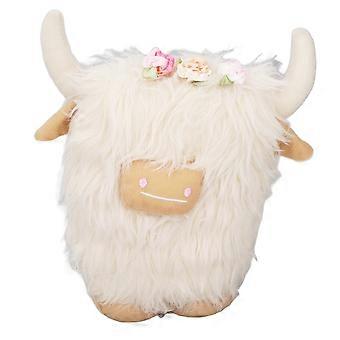Highland Cow Plush Doll Simulation Soft Stuffed Faceless Cattle Toy for Home Decoration White