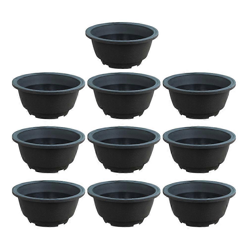 Plastic Planters Round Flowerpots for Indoor Gardening 10Pcs Black Set