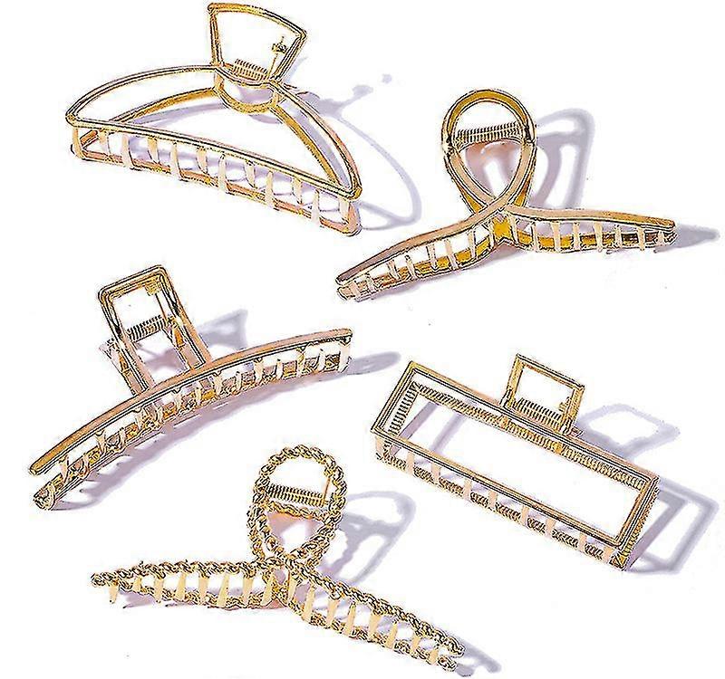 Metal Multi Design Hair Claw Clips Hair Catch Banana Clips Shark Clip Anti-slip Ponytail Holder Pack Of 5