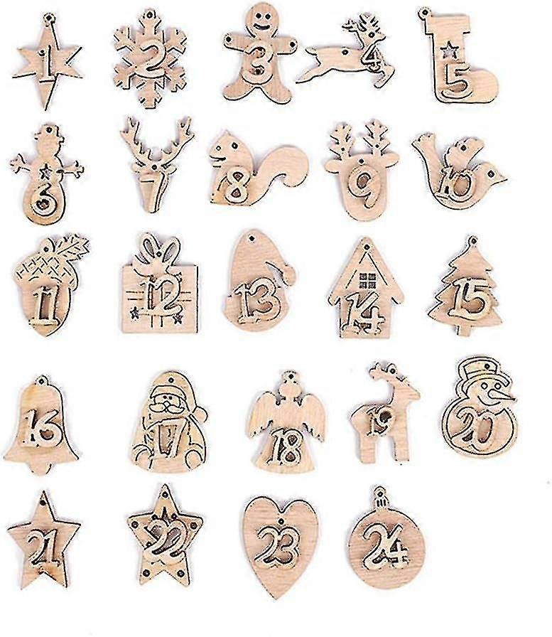 Christmas Wooden Advent Calendar Pendants 1-24 for Craft Bag Charm 24pcs