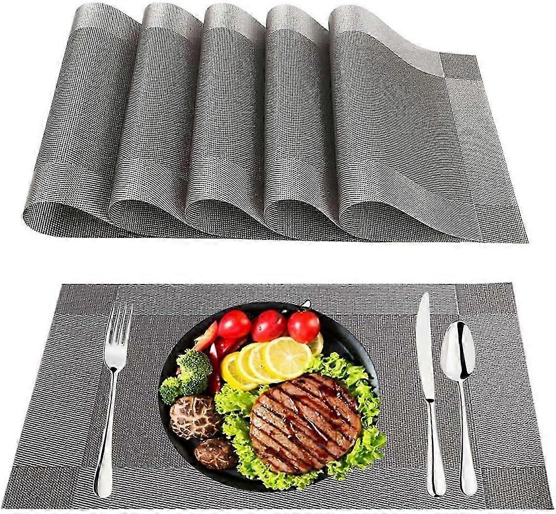 Placemats, 6 Pieces Table Mats non Slip, Washable Placemat,Silver