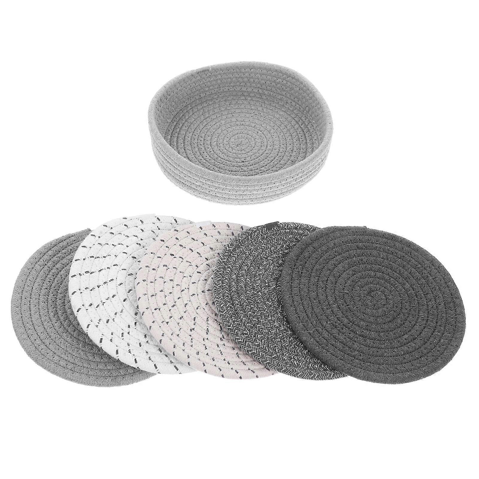 Round Braided Cotton Rope Placemats with Non Slip Holder Heat Resistant Woven Table Mats for Kitchen, Dining, and Home Use Mixed Color Coasters