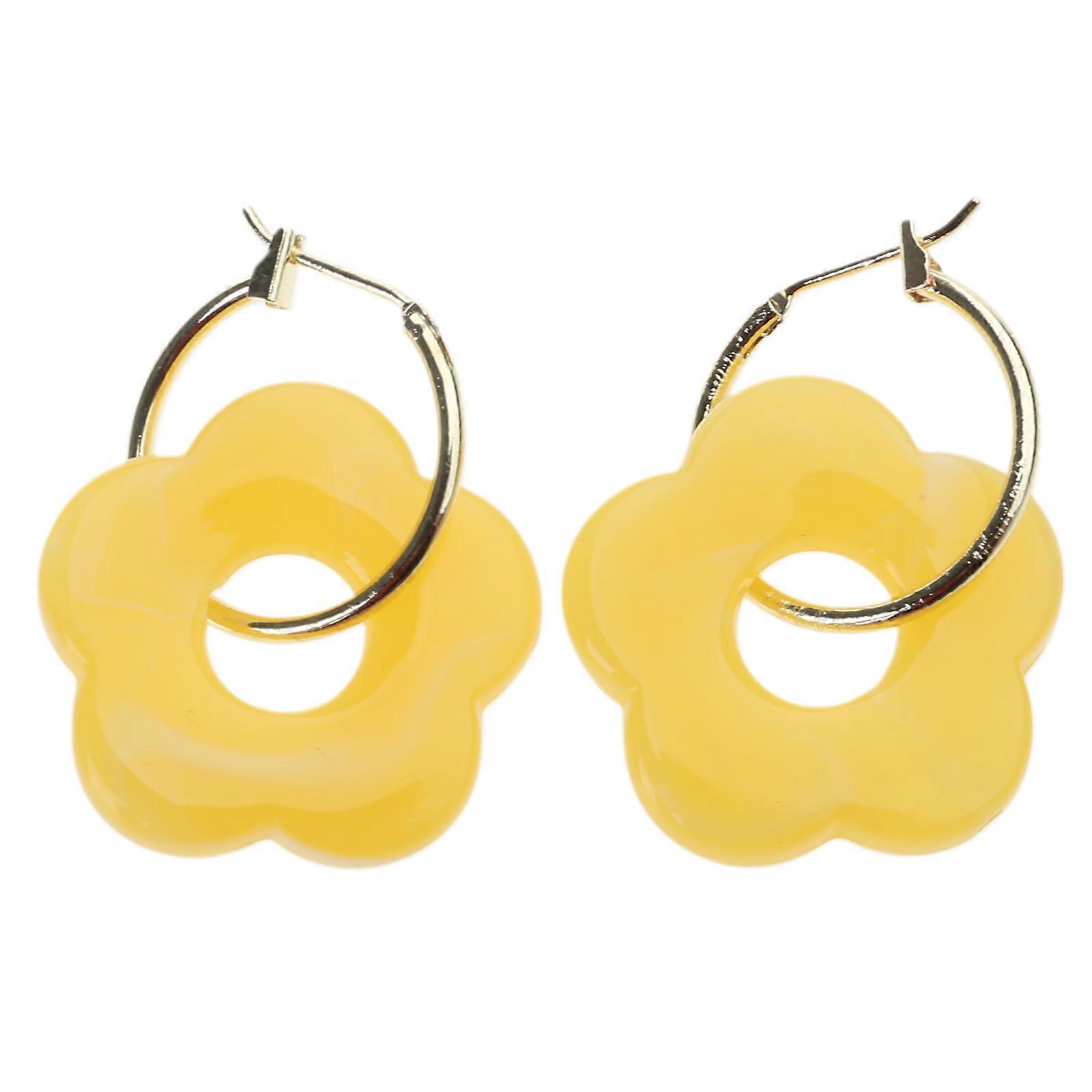 Colorful Flower Resin Acrylic Charm Earring Gold Color Circle Ear Buckle Hoop Earrings for Women Cute Gift Jewelry