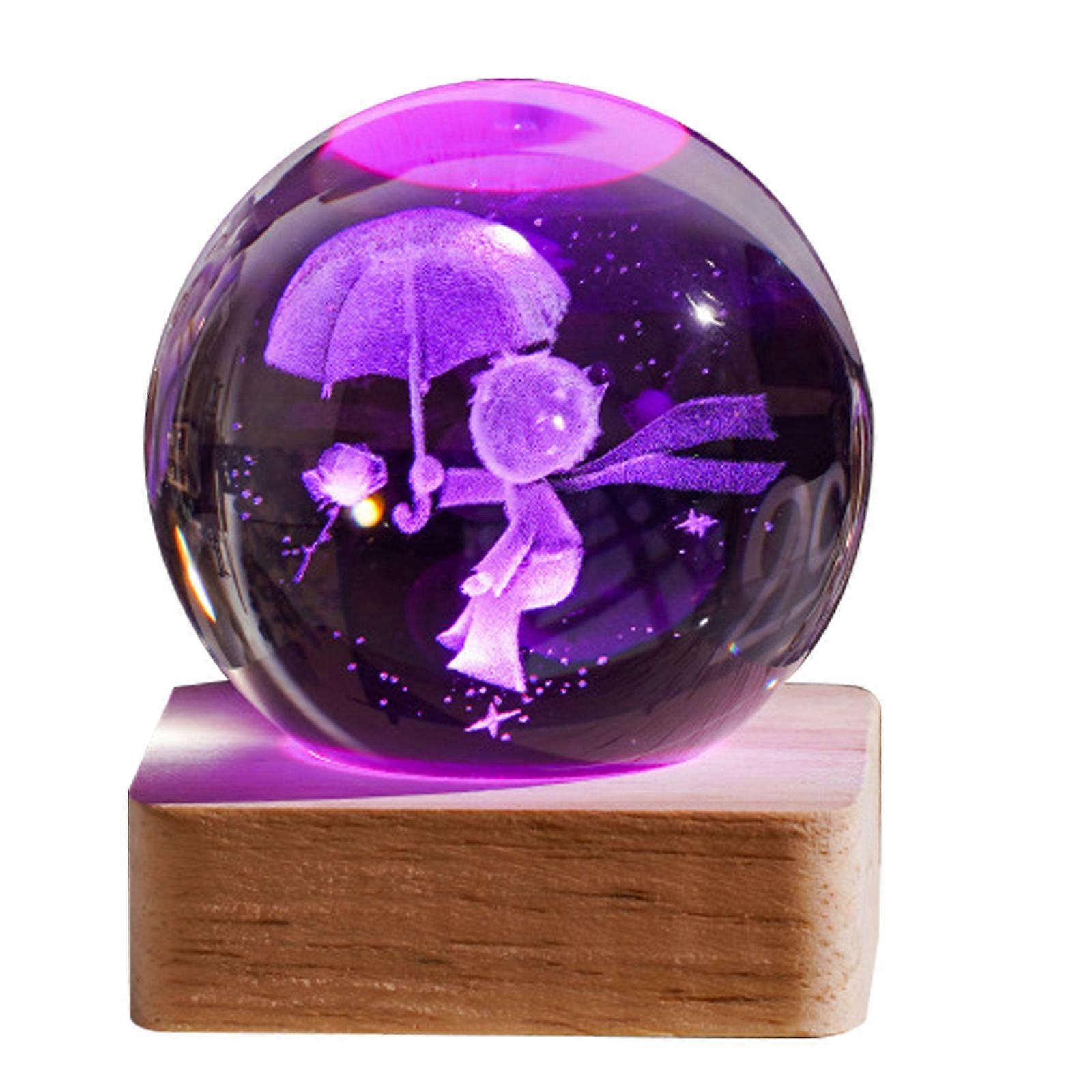 Colorful luminous crystal ball small night light Galaxy night light USB living room creative birthday gift bedroom gift colorful light wood base