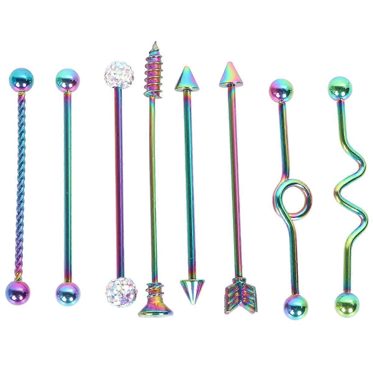 Colorful 8Pcs Screw Barbell Earrings Industrial Style Jewelry For Both Men And Women Daily Use Accessories