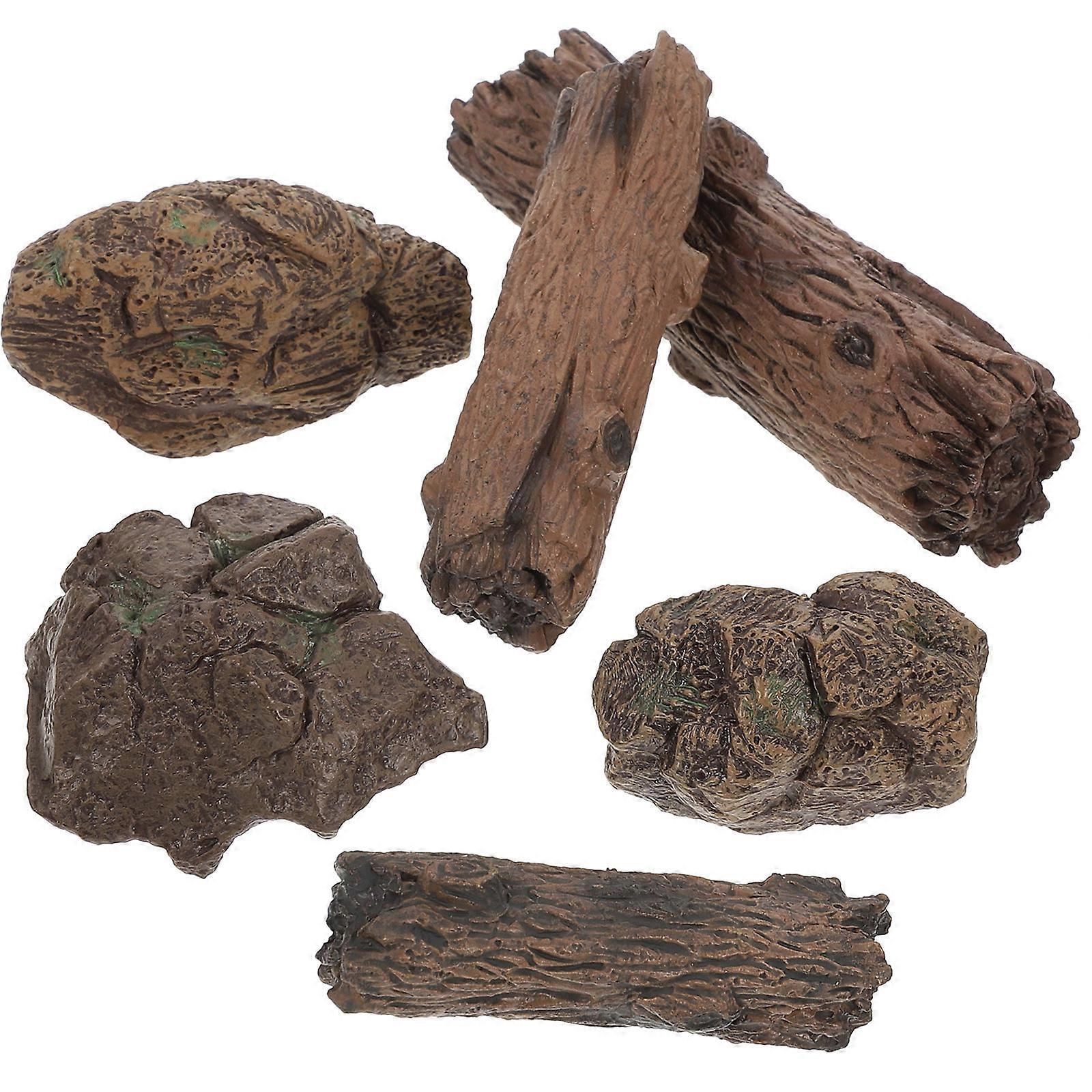 Artificial Landscape Stone Miniature Tree Stump Resin Ornaments Indoor Decoration Educational Toy 6Pcs