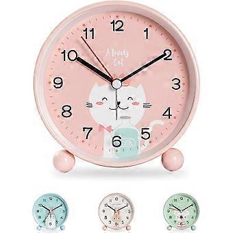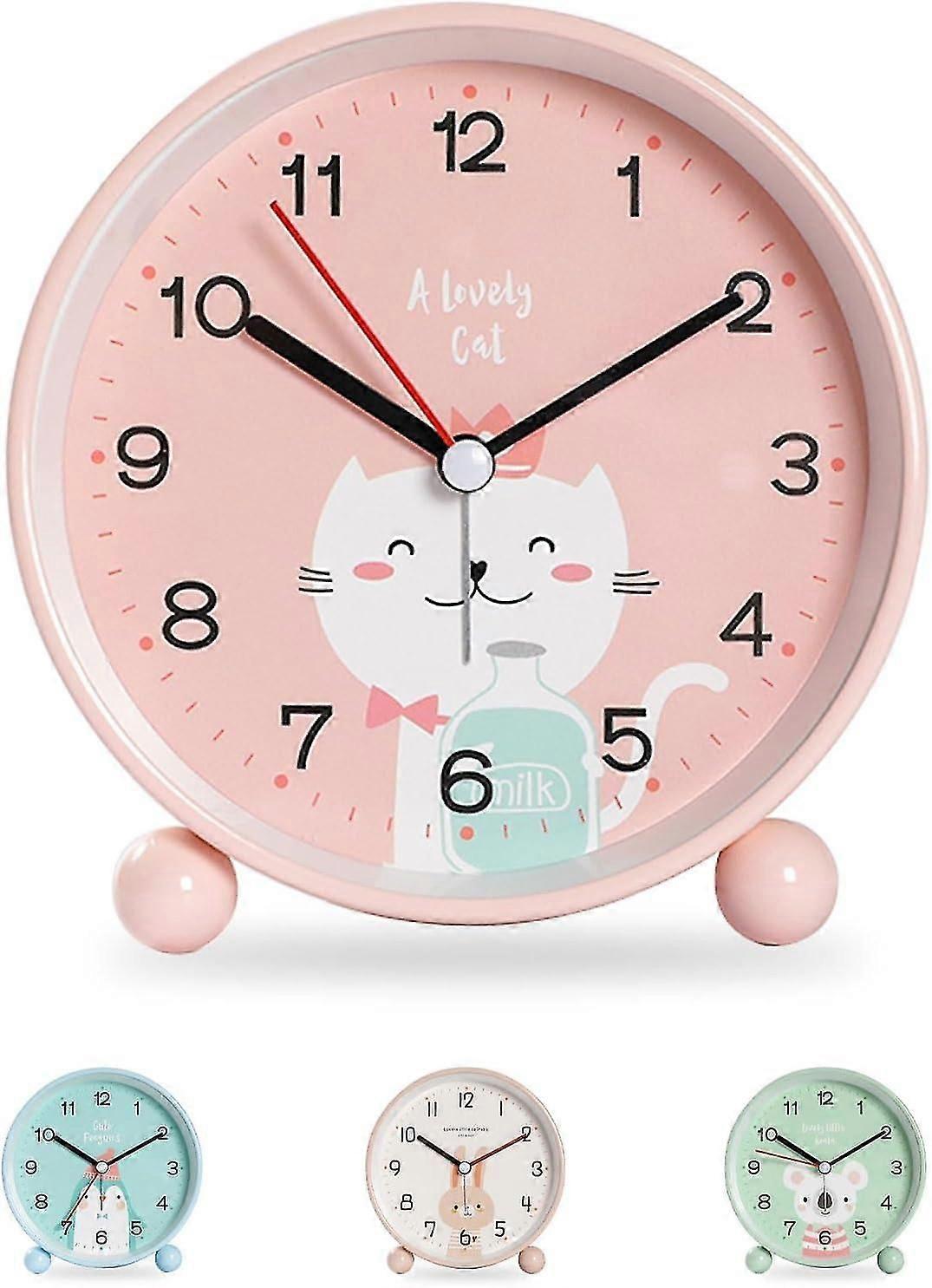 Educational Kids Alarm Clock - Day/Night, Children's Alarm Clock Non-Ticking Analog Alarm Clock Travel Alarm Clock(Pink Cat)