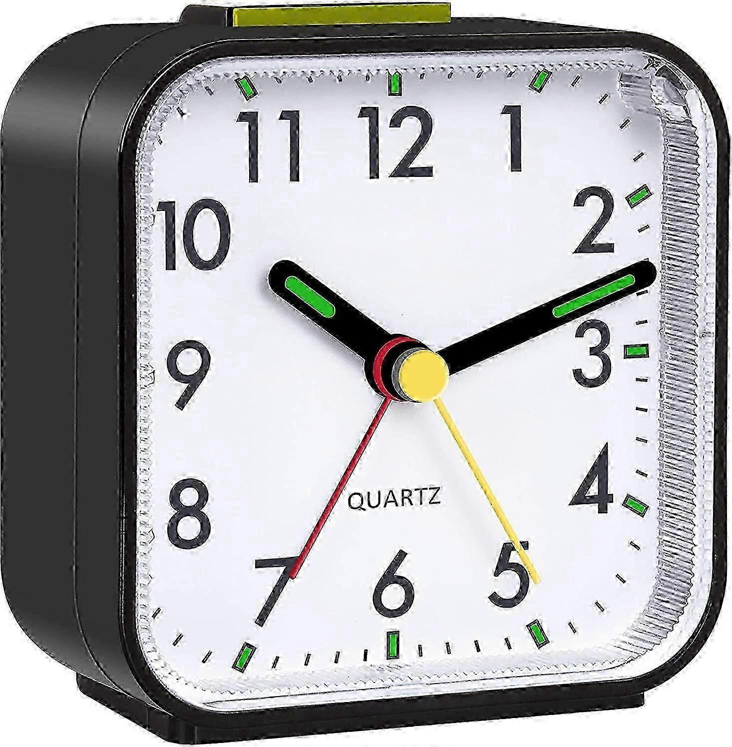 Silent Analog Alarm Clock Small Silent Non-Ticking,with Night Light Snooze Function Battery Operated(Black)