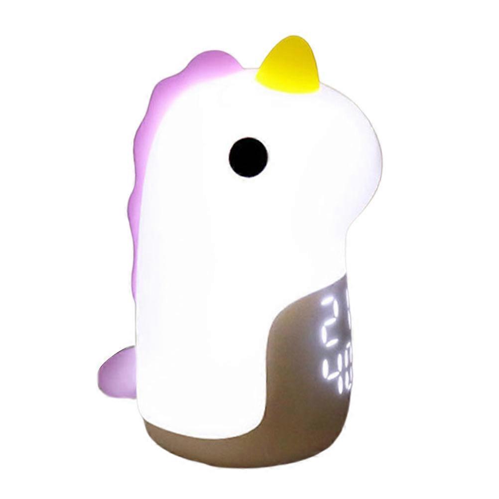 Child Alarm Clock Unicorn Shape Silicone Night Light Indoor Use Purple 1Set