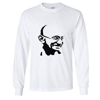 المهاتما غاندي هندي رجالي طويل الأكمام تي شيرت أبيض أساسي تي شيرت