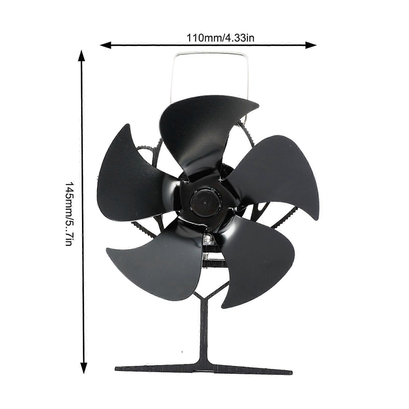 Black Fireplace 5 Blades Aluminum Alloy Heat Powered Stove Fan Log Wood Burner Safe Home Fireplace Fan Efficient Heat Distributi