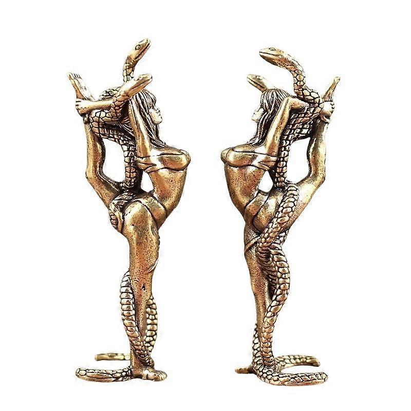 Solid Brass Women And Snake Furniture Ornaments Living Room Desk Tea Pet Brass Crafts Bronze Miniatures Decoration