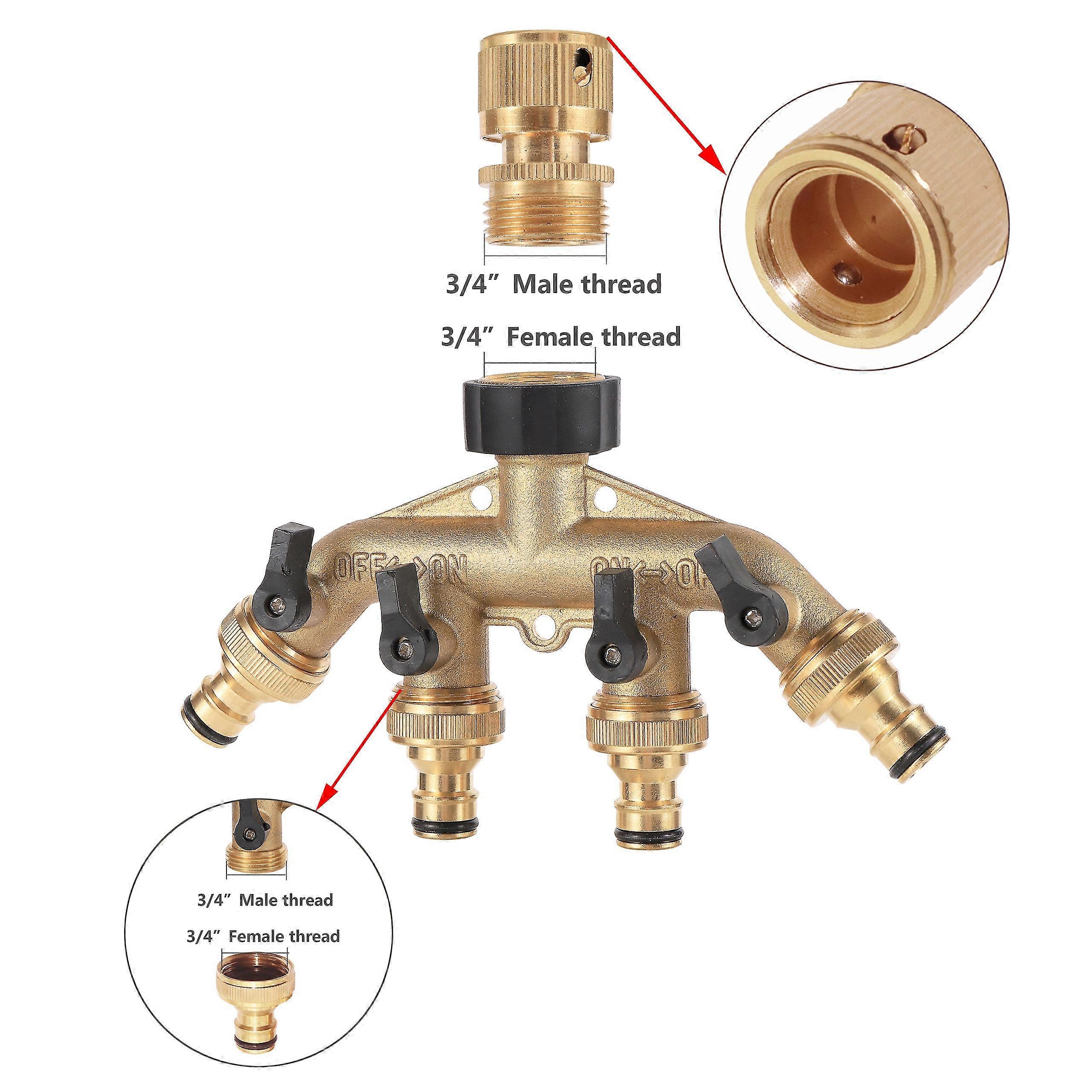 Brass 3/4 Inch Thread 4 Way Garden Tap Water Splitter Water Pipe 4 Way Splitters Female Thread 3/4" Irrigation Valve Eu Standard