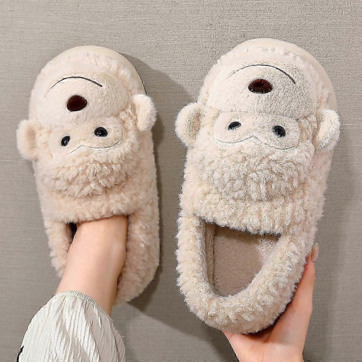 Women Men Shoes Girl Fur Anti Slip Warm Slippers Fashionable Lovely Monkey Matching Cotton Slipper Autumn Winter Plush Slippers
