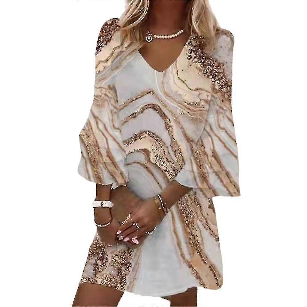 Women Ladies Summer 3/4 Sleeves V-neck Dress Loose Beach Sundress