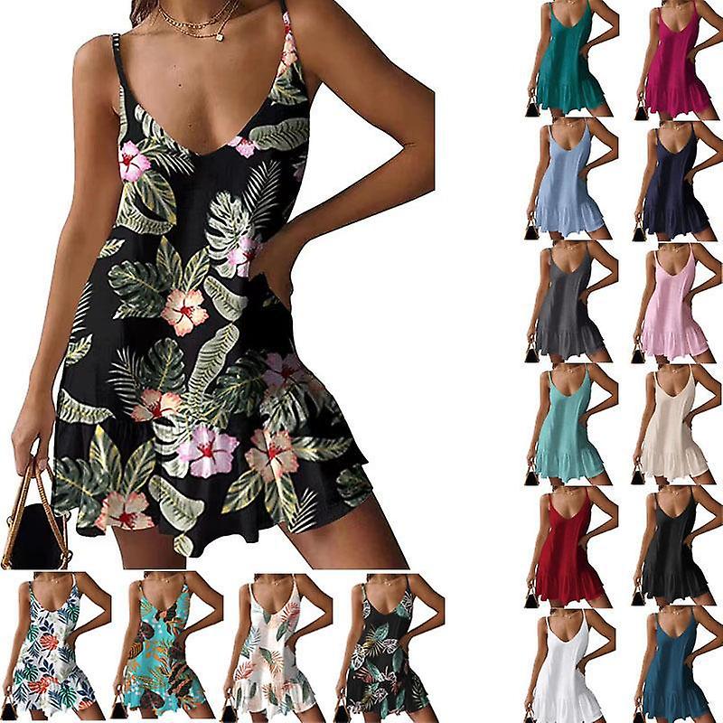 Women Girls Dress Trendy Loose Casual Print V-neck Strap Beach