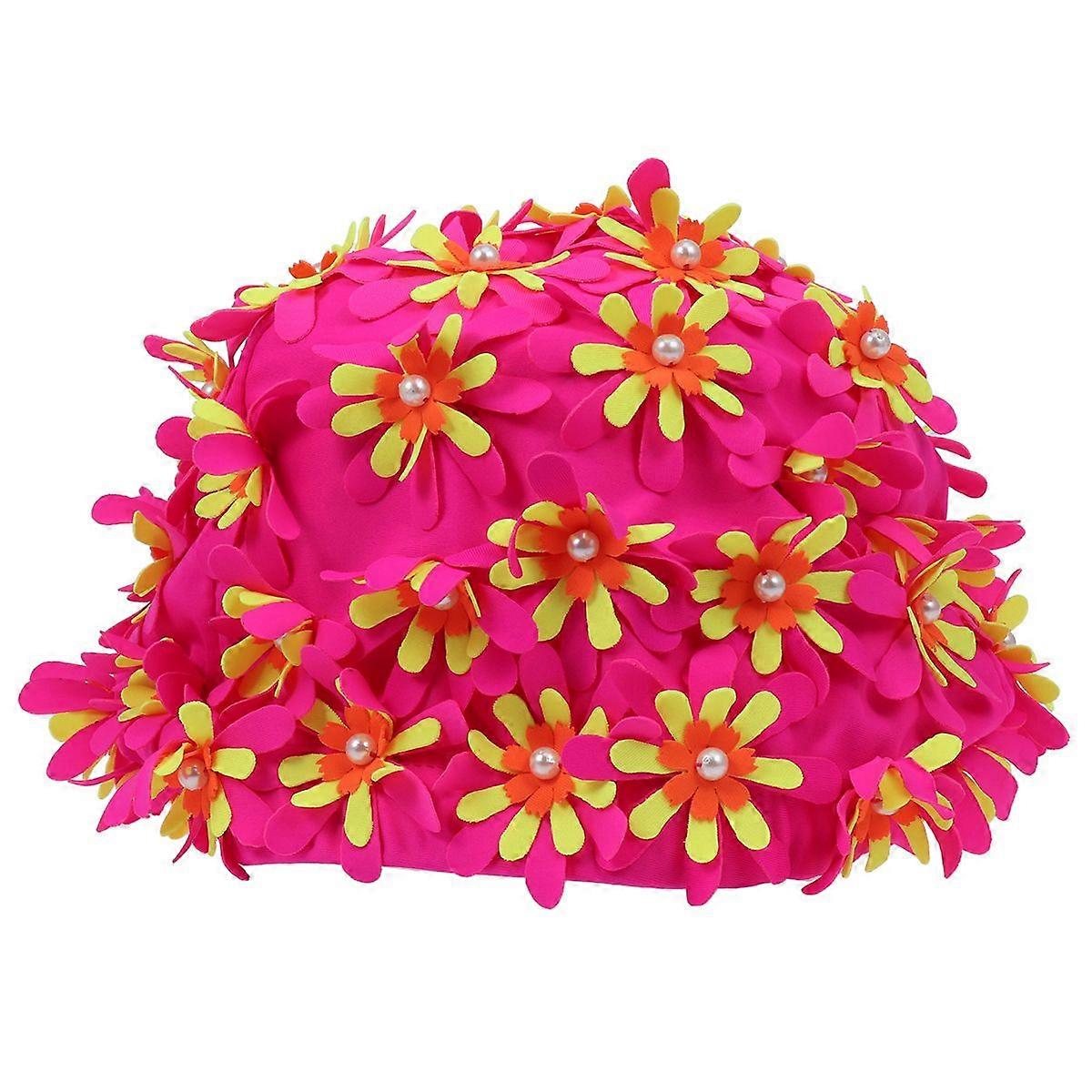 Women Adult Swimming Floral Pearl 3D Flower Design Swimming Hat Ear Protection Free Size Women Bathing (Pink)