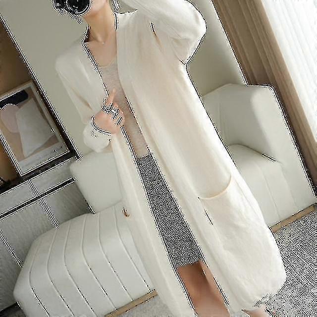 Women Cashmere Cardigans Autumn And Winter Casual Long Knitted Cardigan Women Sweater Coat V-neck Cardigans-Good