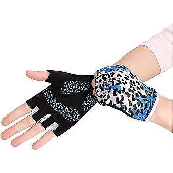Women Cycling Leopard Gloves Youth Girl Half Finger Mittens Riding Nonslip Fingerless Outdoor Sport Safety Handwear With Padded Uv Protection Breathab