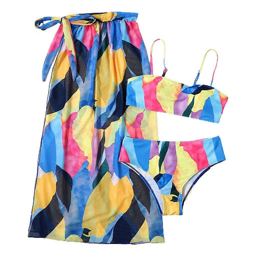 Women Sexy 3pcs Bikini Set Colorful Graphic Printed Tube Top Bra for Triangle Bottom Swimsuit with Tie Waist Beach Skirt Cover Up Bathing Suit
