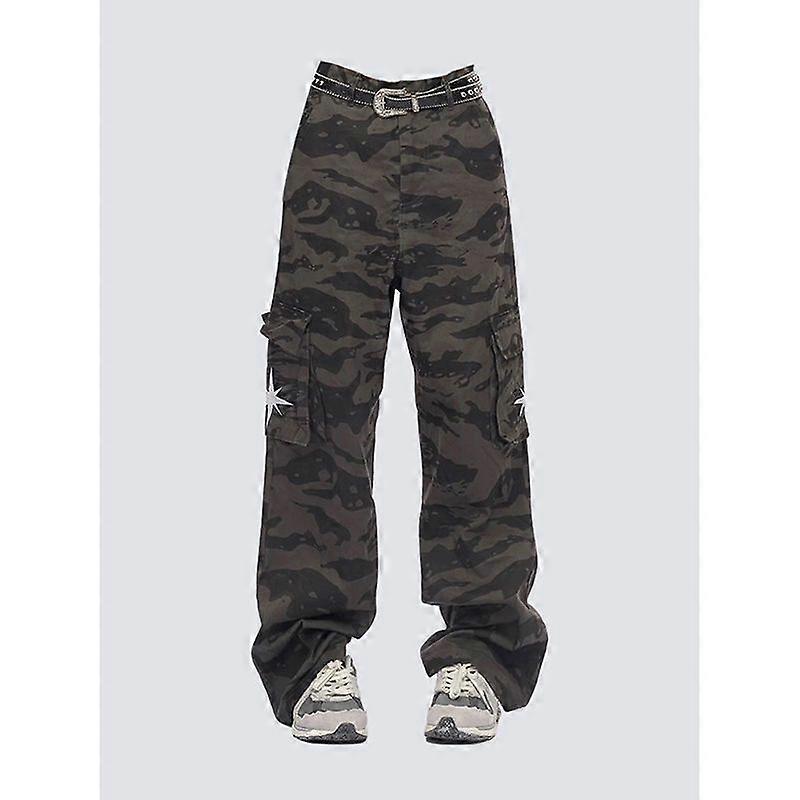 American Style New High Street Hip-hop Camouflage Cargo Pants Men Loose Embroidery Casual Straight Leg Wide Leg Couple Trousers