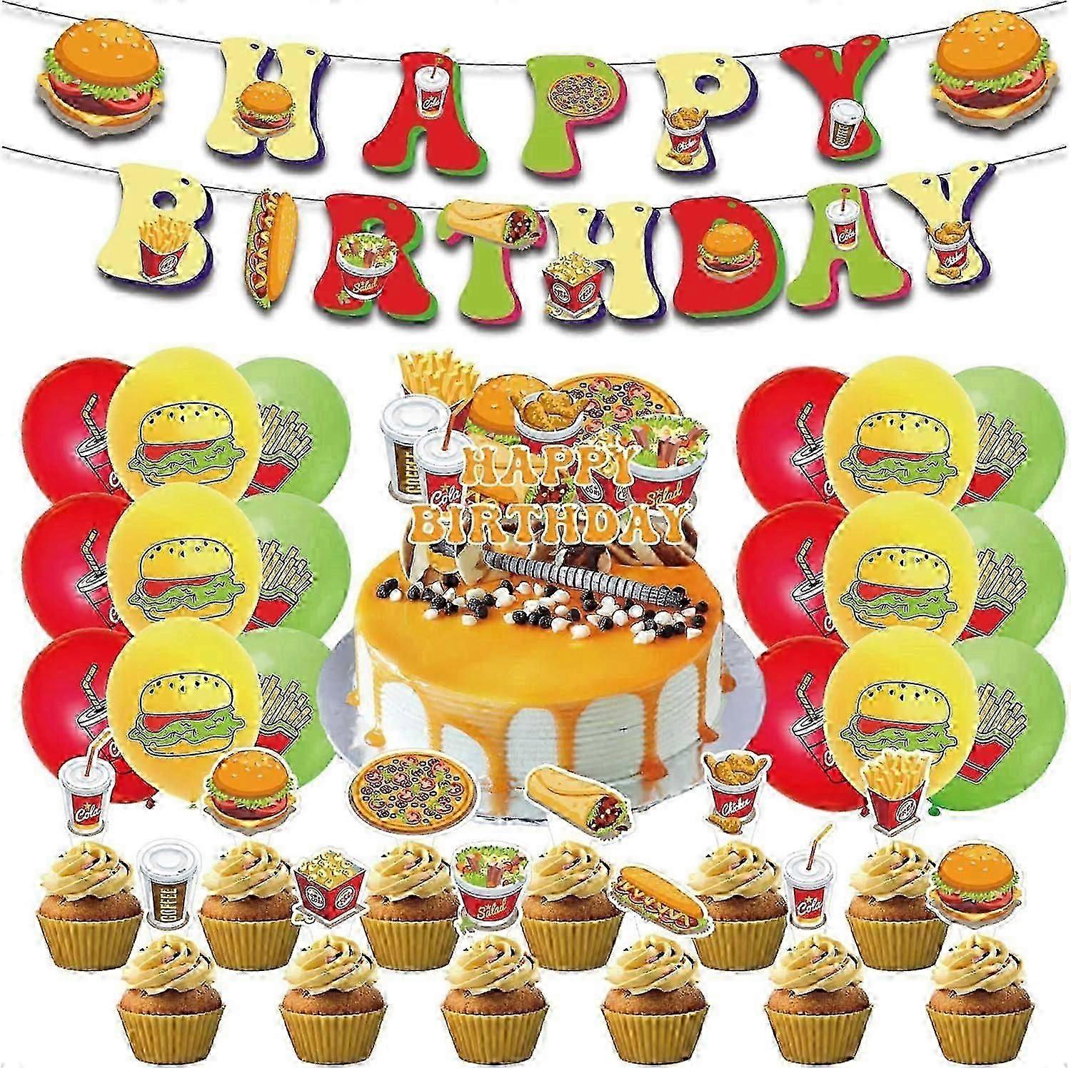 Fast Food Birthday Party Decorations Pizza Party Supplies including Burger Happy Birthday Banner Coke Balloon French Fries Cake