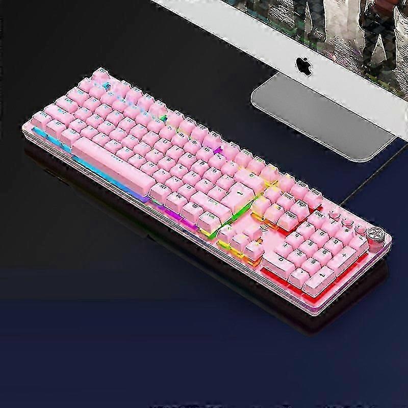 Pink Real Mechanical Keyboard And Mouse Set With Blue Switch