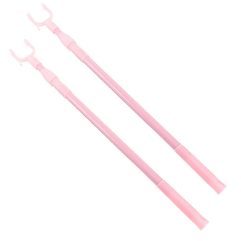 Pink Adjustable Retractable Clothing Pole for Home Use Plastic with Strong Bearing Capacity 2 Pieces