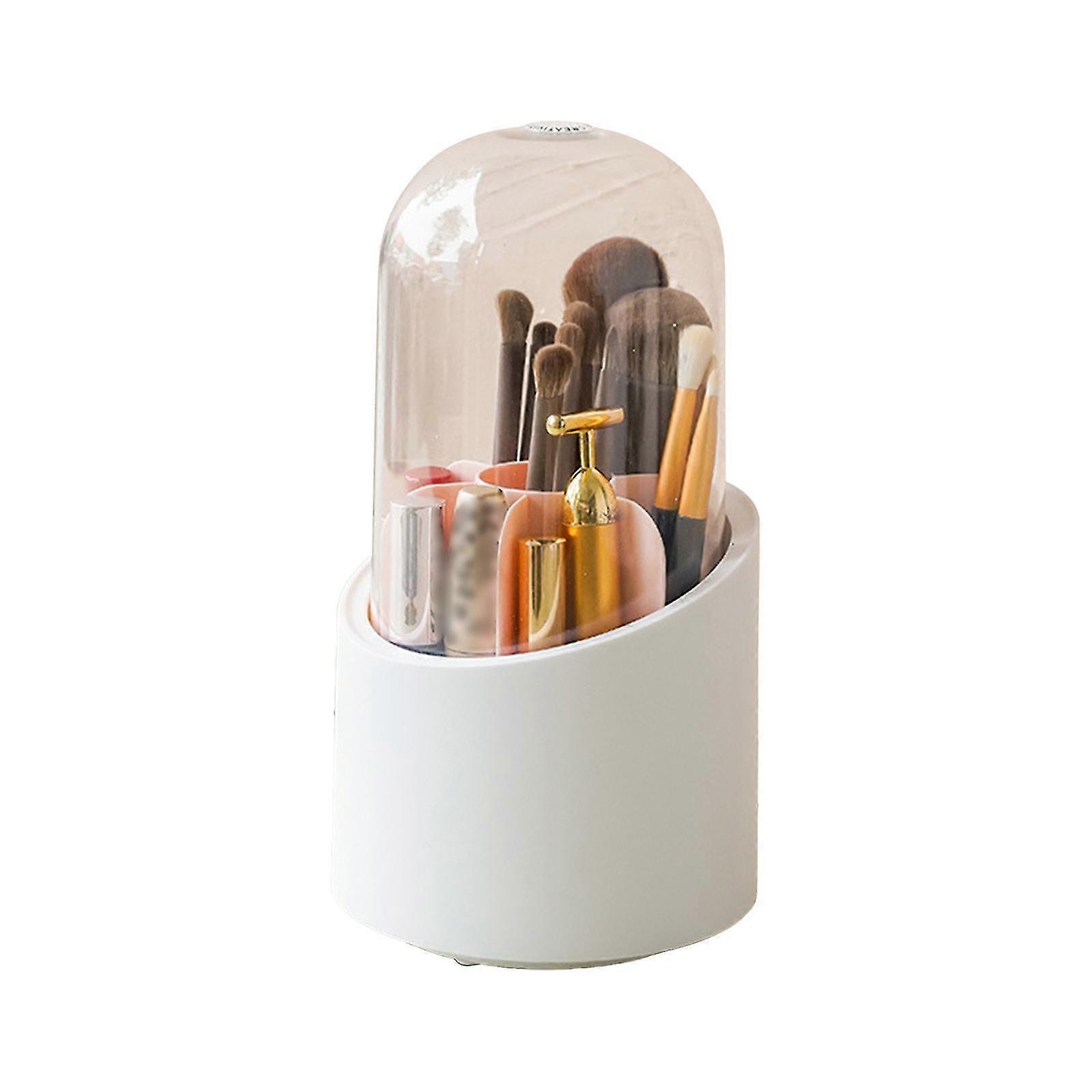 Pink Makeup Brush Storage Barrel Dustproof Home Eye Shadow Lipstick Cosmetics Storage Box Desktop Transparent Rotating Pen Container ()