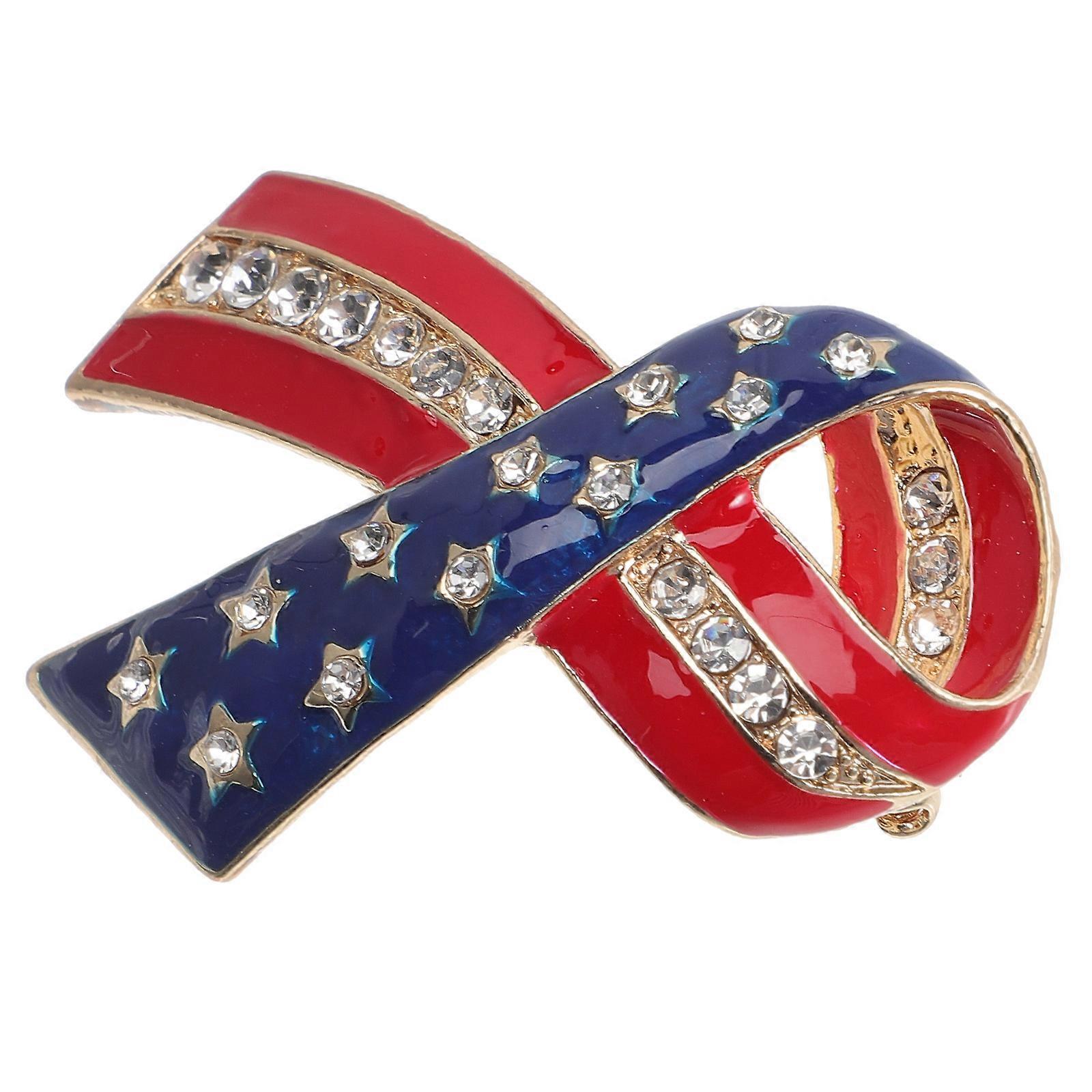 USA Flag Pin Independence Day Accessories Clothing Red Glass Crystals 6x4cm 1Pcs