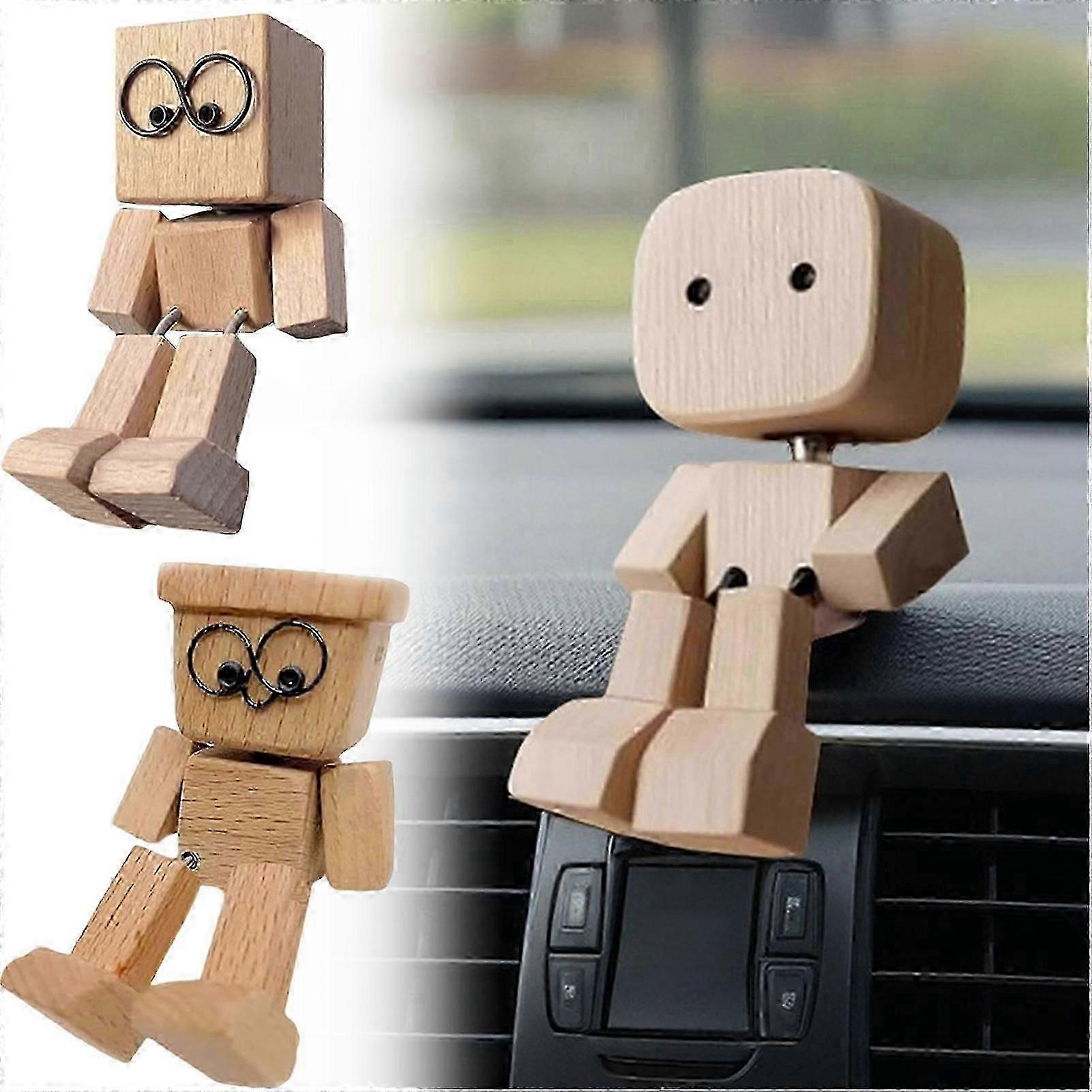 Handmade Shaking Wooden Man Figurine for Car Desk Office Decor Cute Leg Shaking Toy Gift for Friends