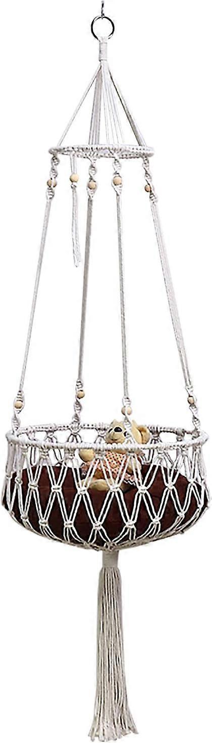 Handmade Hanging Cat Bed Cotton Durable Fringed Bedside Bohemian Basking Hammock Cat Window Perch for Indoor Free Installation ing Bed