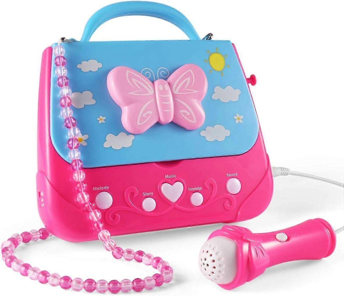 Kids Karaoke Machine, Girls Karaoke Machine Toy Music Player with Microphone and Lights, Battery Powered Portable