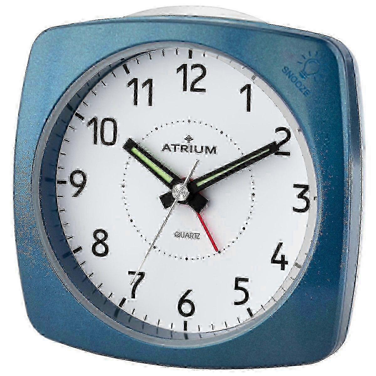 ATRIUM Wecker Analog Quarz blau metallic A251-5 ohne Ticken mit Licht und Snooze