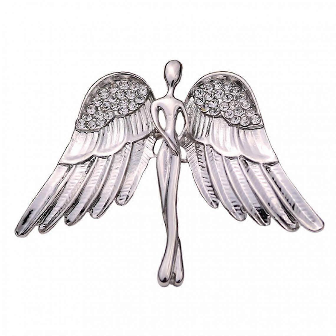 Angel Wings Shape Brooch Crystal Charm Pin Brooch For Men Women Silver