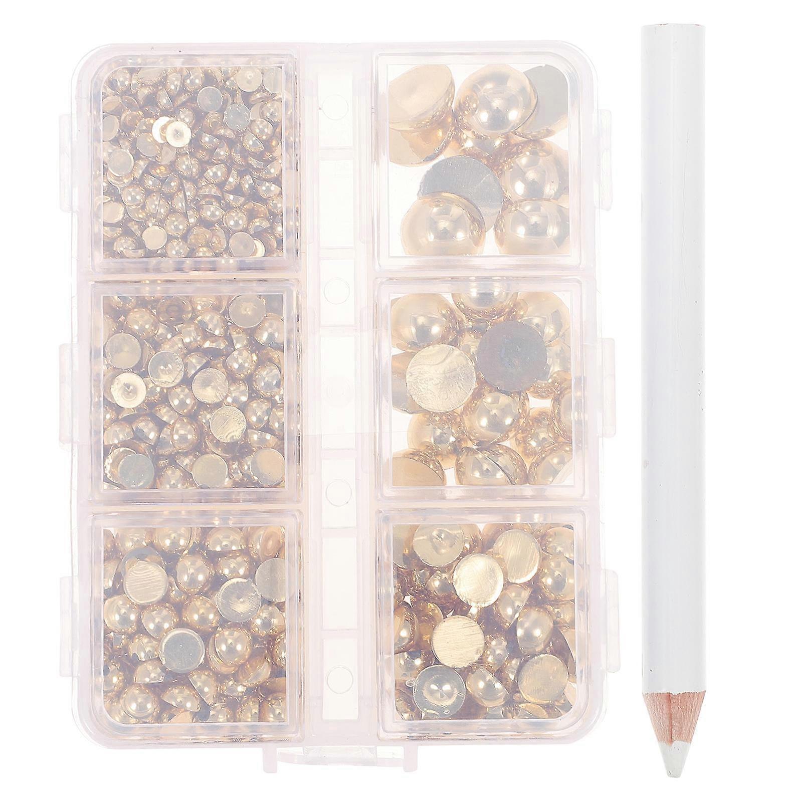 Jewels Stones for Nails Half Round Pearl Loose Beads for Nail Art Gift Making Abs Golden for Decoration 1 Set