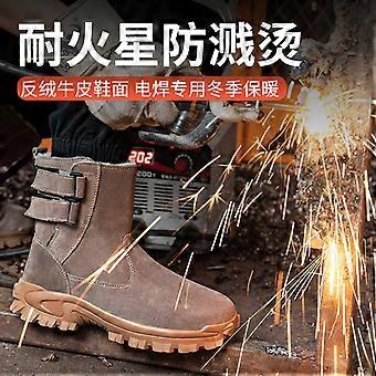 أحذية التأمين على العمل الرجال في فصل الشتاء بالإضافة إلى المخمل الصلب الدافئ اصبع القدم كاب لحام الكهربائية المضادة للحروق العمل أحذية الثلج القطن H995
