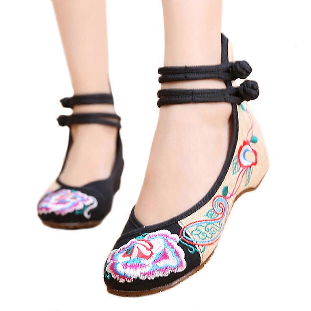 Old Beijing Cloth Shoes Assorted Colors Casual Tie Embroidered Shoes Slipsole Low Cut Increased within National Style Shoes