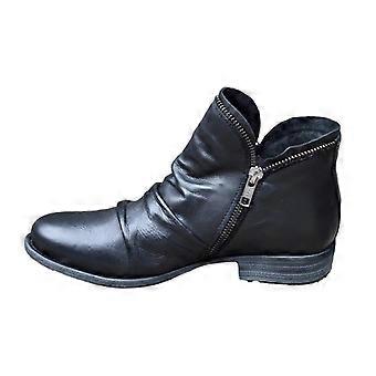 أحذية نسائية الرجعية اللون الصلب منخفض الكعب زيبر أزياء أحذية جلدية قصيرة