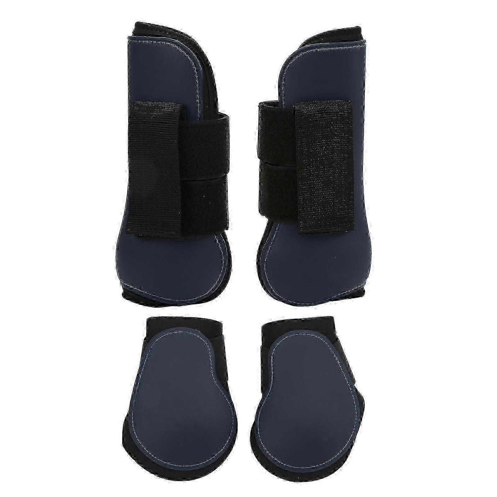 Horse Tendon Boots PU Elastic Shock Absorbing Protective Front Hind Horse Leg Guard for Off Road CompetitionsA Set of Navy Blue L