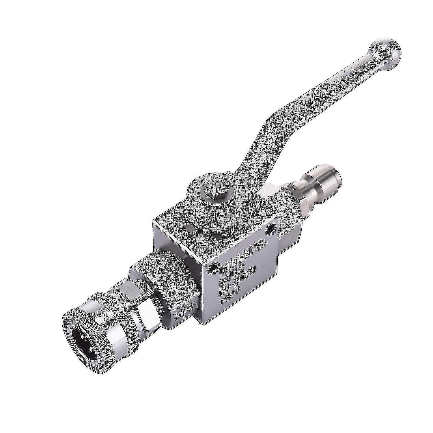 About this itemHigh pressure ball valve has 3/8 quick connector and 3/8 quick connect plug. Easy to connect ball valve to gun, nozzle, pump and hose.The steel pressure washing ball valve kit is designed for pressure washer hose.The max working pressure is 4500 PSI. The max working temperature is 158 F.The ball valve is easy to turn on and off. It offers great leverage under high pressure.Quick Disconnect Fitting: 3/8 quick coupler plug + 3/8 male NPT thread; 3/8 quick coupler socket + 3/8 male NPT thread.