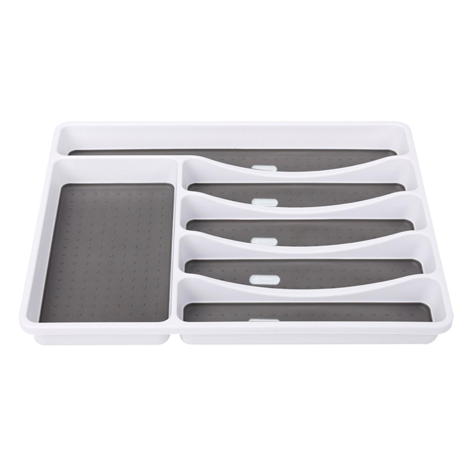 Six compartments to stack and organize cutlery and utensils, maximizing drawer storage space.