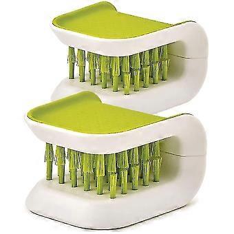أدوات المطبخ أدوات التنظيف ، فرشاة تنظيف السكين والشوكة ، فرشاة تنظيف اليد على شكل حرف U (2 قطعة ، أخضر)
