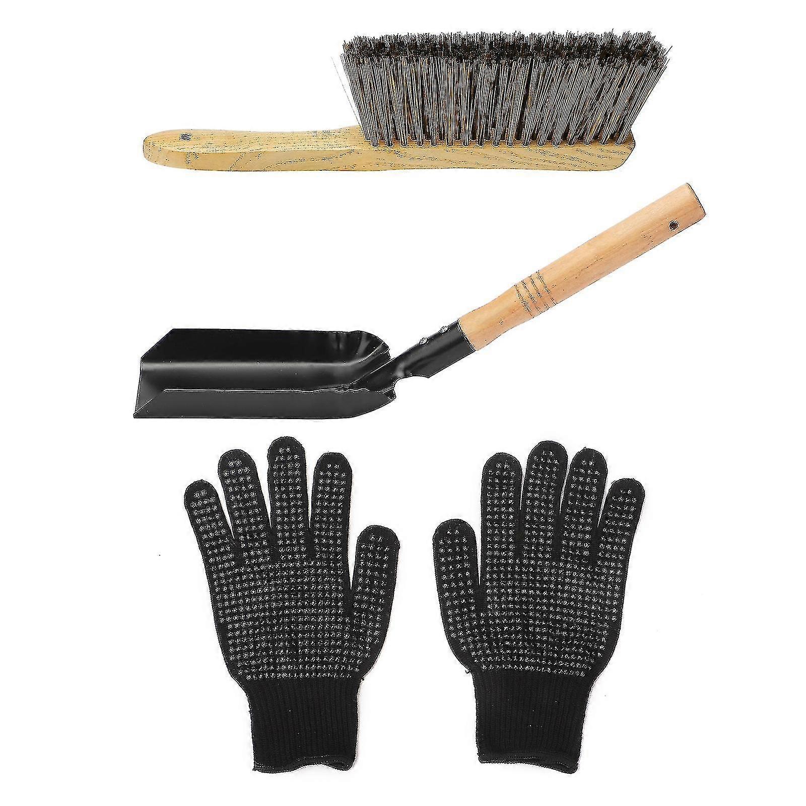 Fireplace Cleaning Tools Kit Silicone Gloves Hearth Brush Set Light Wooden Handle Strong Sturdy Coal Shovel