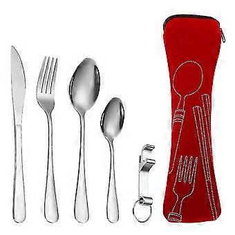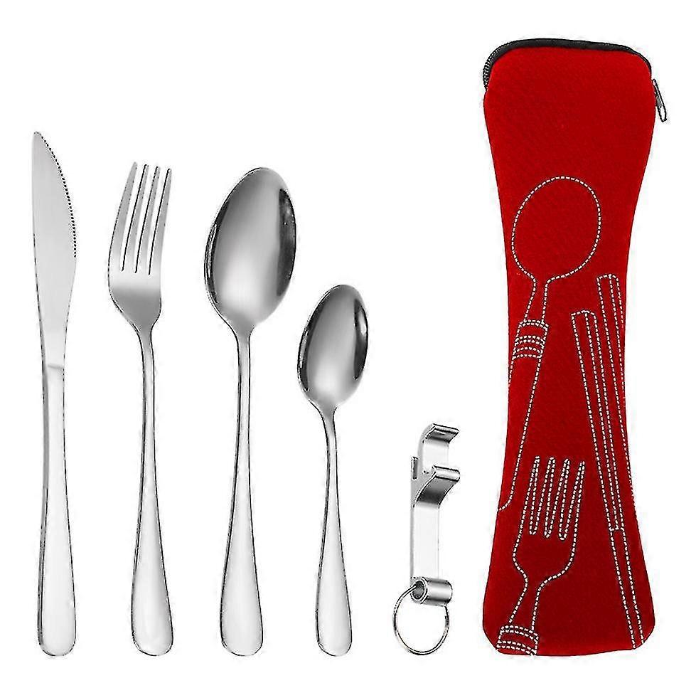 Red Portable Stainless Steel 5-piece Outdoor Travel Tableware Az20669