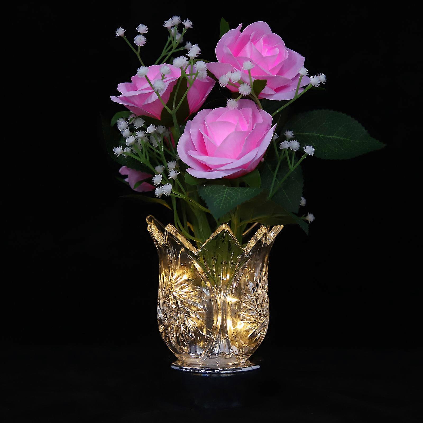 Led Rose Light Decorative Lighted Flower Vase With Warm Glow For Bedroom Living Room And Lightweight Glass Design For Cozy Ambiance