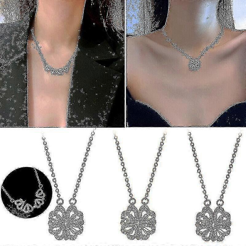 Four Leaf Clover Necklace For Women Vintage Magnetic Folding Heart Jewelry Gifts