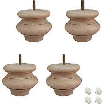Wooden Furniture LegsSolid Wood Furniture Legs,Unfinished Bun Feet,Round Wooden Sofa Feet,for Bed Couch Cabinet Bench Chair Ottoman Table TV Stand Lov